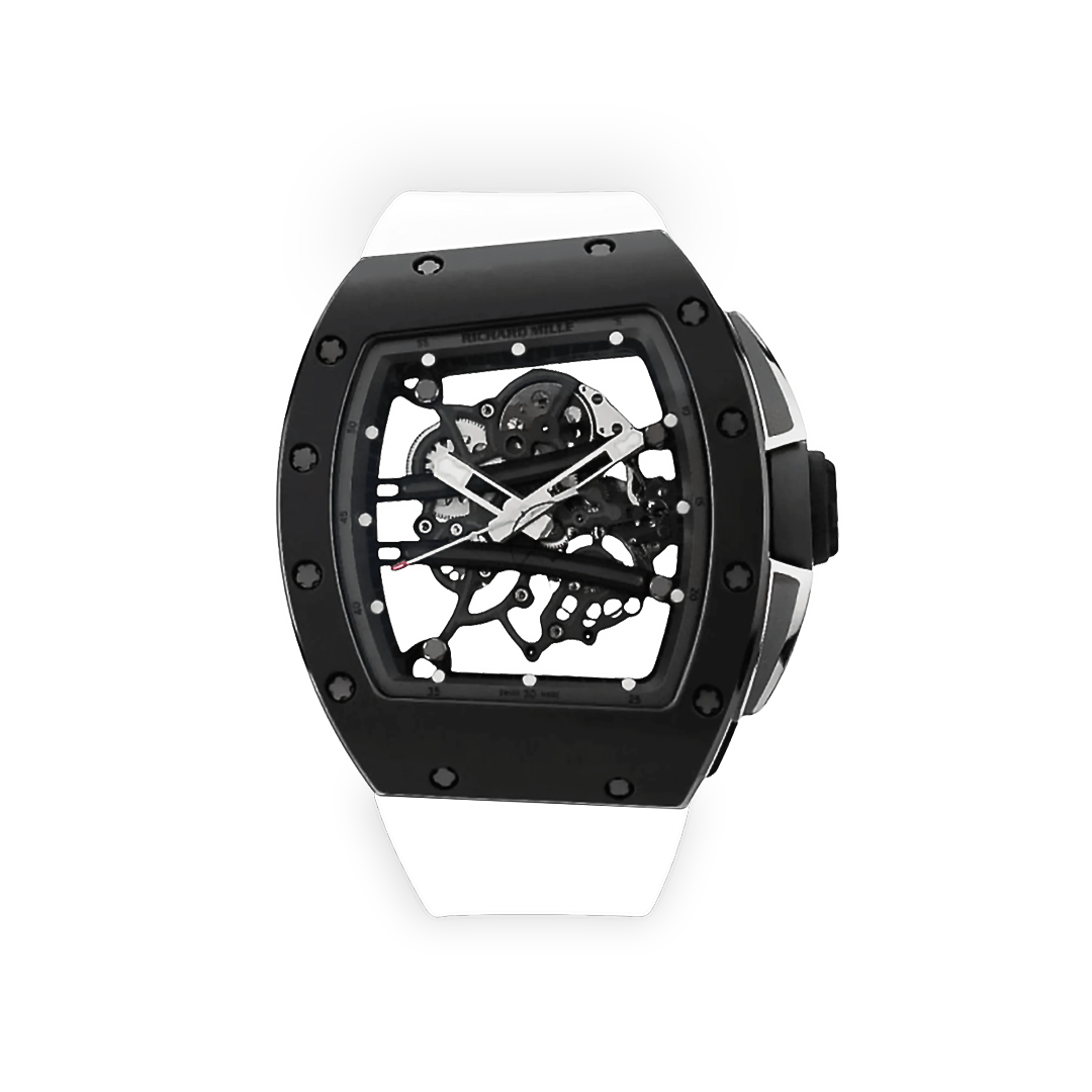 RM061-01 Yohan Blake menghadirkan desain skeleton agresif dengan material TZP ceramic dan Carbon TPT yang sangat futuristik. Edisi kolaborasi atlet ini diproduksi terbatas dan memiliki karakter visual yang sangat khas.